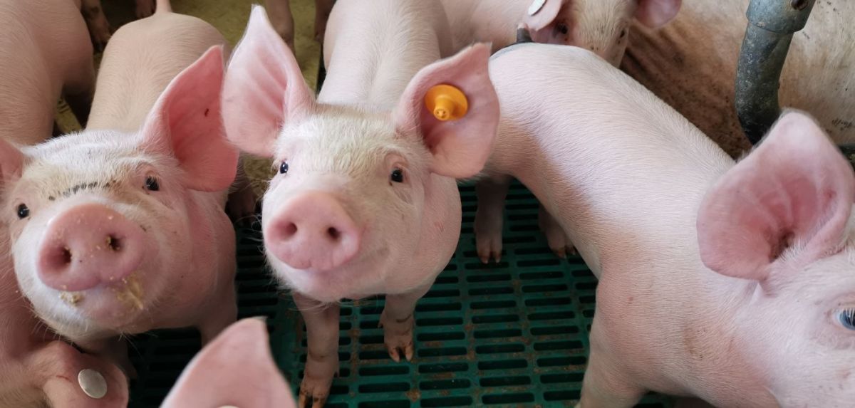 In einen Mastschweinestall werden Schweine mit einem Gewicht von 25 Kilogramm eingestallt. Bis sie etwa 115 Kilo wiegen, leben sie hier. Zu diesem Zeitpunkt sind sie etwa zehn Monate alt und schlachtreif. Die meisten Mastschweine werden auf Spaltenböden gehalten. Durch die Schlitze im Beton können Kot und Urin abfließen. So bleiben die Tiere sauber. Die Exkremente werden in einem Güllebehälter gesammelt und dienen als organischer Dünger für landwirtschaftliche Flächen. Er bringt den Pflanzen Nährstoffe und verbessert die Bodenfruchtbarkeit. Auf den Feldern wächst dann das Futter der Schweine. Es besteht größtenteils aus Getreide und eiweißreichen Futtermitteln wie Körnermais, Ackerbohnen, Raps- oder Sojaschrot.